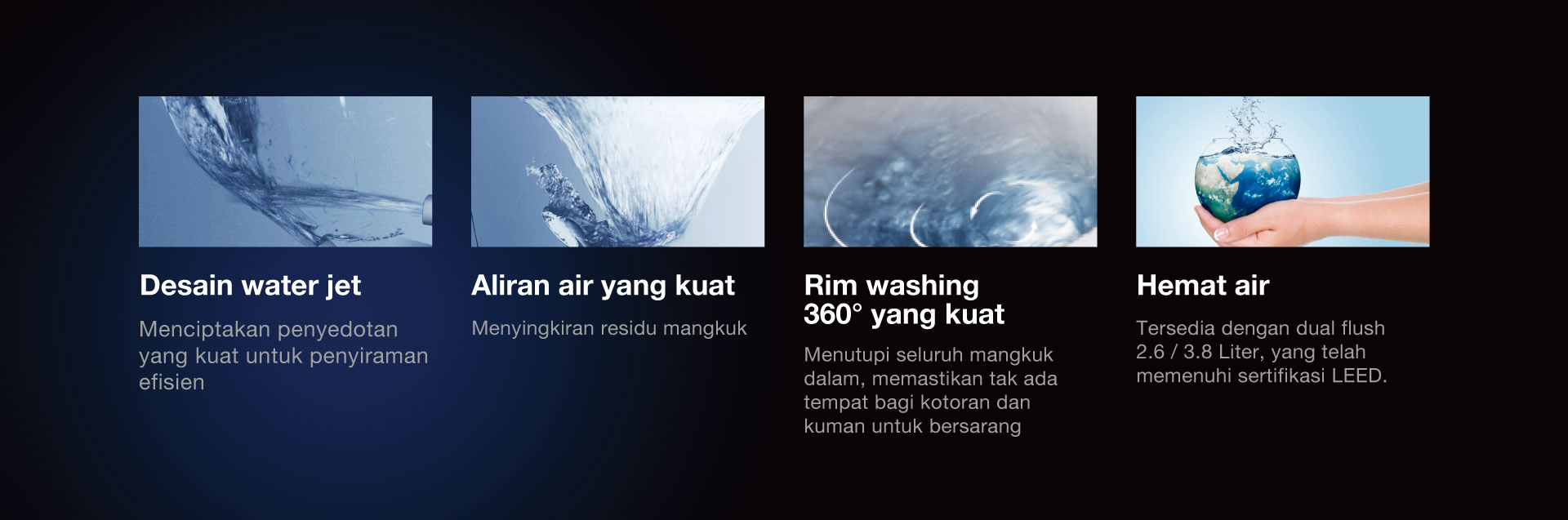 Dapat dipasang di dinding dan tersedia dengan S-trap maupun P-trap untuk kebutuhan pemasangan yang berbeda dan lingkungan dengan tekanan air rendah.