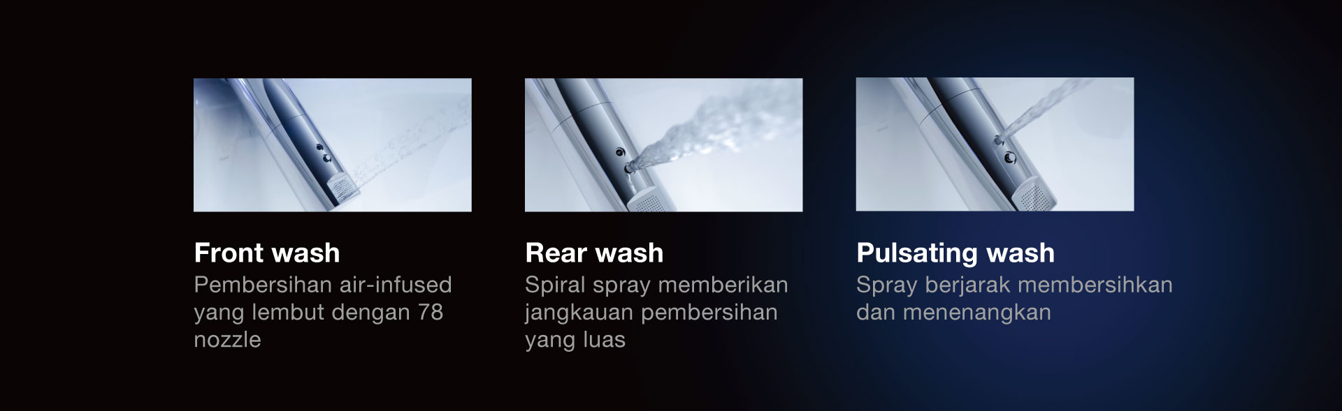 Tombol sanitasi one-click mengaktifkan fungsi Electrolyzed Water dan lampu UV guna membersihkan mangkuk dan tongkat toilet, guna memastikan higienitas yang lebih baik.