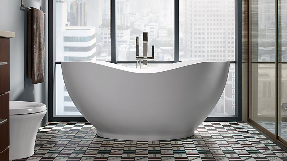 Bentuk frestanding bathtub Abrazo™ yang unik membuatnya menjadi titik fokus alami dari kamar mandi kontemporer Anda. Terbuat dari bahan dengan permukaan padat KOHLER Lithocast™, Abrazo memiliki lapisan matte yang menyerupai batu asli, tetapi terasa hangat saat disentuh.