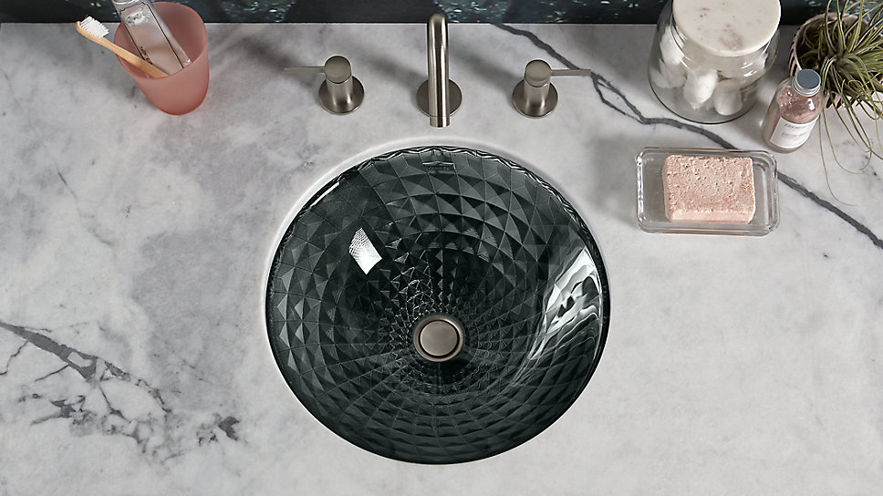 Dengan aspek reflektif dari potongan kaca, Kallos bersinar seperti permata di kamar mandi atau kamar rias. Bagian dari koleksi wastafel di Artist Editions, wastafel kaca yang menyatu dengan konter ini menawarkan pola arsitektur khas yang mengingatkan kita pada kristal. Desain wastafel ini menciptakan kedalaman visual yang menakjubkan dan secara tepat menyembunyikan peralatan mandi yang tersimpan di dalam furnitur kamar mandi.