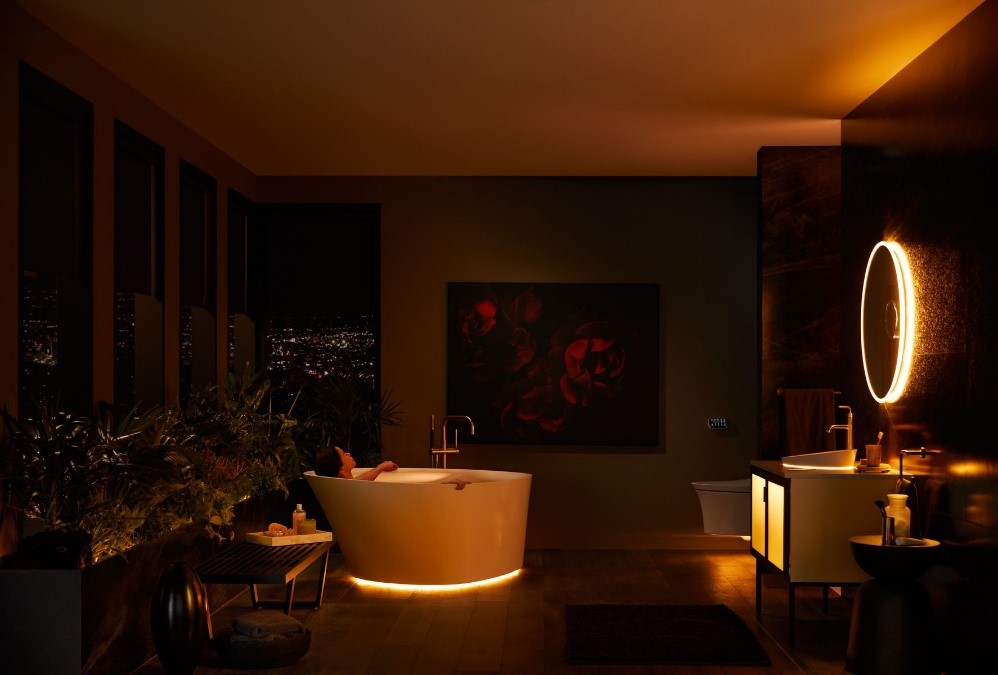 The Veil Lighted Suite will serve the customers with appropriate lighting to guide their way and allow for a more comfortable and natural start of their day or help them ease back into sleep instead of the normal jarring bright light that we would usually see in a bathroom at all times of the day. The Veil Lighted Collection is a part of Kohler Smart Home concept, for users who seeks strategically-placed lighting assist with guiding, task, ambiance or a combination within the same bathroom setting. No more fumbling for light switches with motion sensor, with added value of ease of visibility for your guests who are unfamiliar with the bathroom space. The integrated lighting works off a circadian rhythm to more naturally enhance your wellbeing.